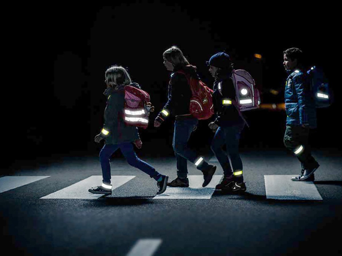 — обов’язково використовувати світловідбивні елементи — флікери (вони збільшують видимість пішохода в кілька разів); вішати їх на сумки, рюкзаки, одяг (бажано — на висоті стегна);