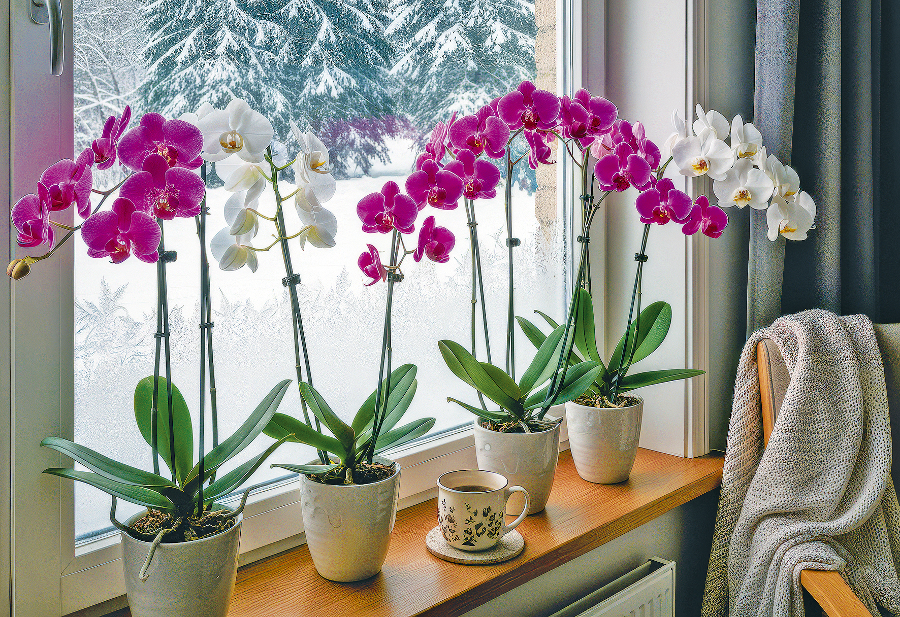 Підживлювати квітучу орхідею потрібно, але обережно, оскільки в цей період у рослини через короткий світловий день сповільнюється обмін речовин. Отож узимку слід використовувати лише половину або навіть третину від дози, рекомендованої виробником. Добрива краще обрати або для орхідей, або універсальні, але з низьким рівнем азоту. Адже цей елемент стимулює бурхливий розвиток зеленої маси. Натомість для формування бутонів, тривалого цвітіння та розвитку міцної кореневої системи необхідні фосфор і калій. Крім того, взимку підживлення проводять рідше, ніж навесні чи влітку, — приблизно раз на 3–4 тижні. Найкраще підживлювати методом занурення, а не просто поливом зверху. Для цього слід залишити горщик у розчині на 10–15 хв.