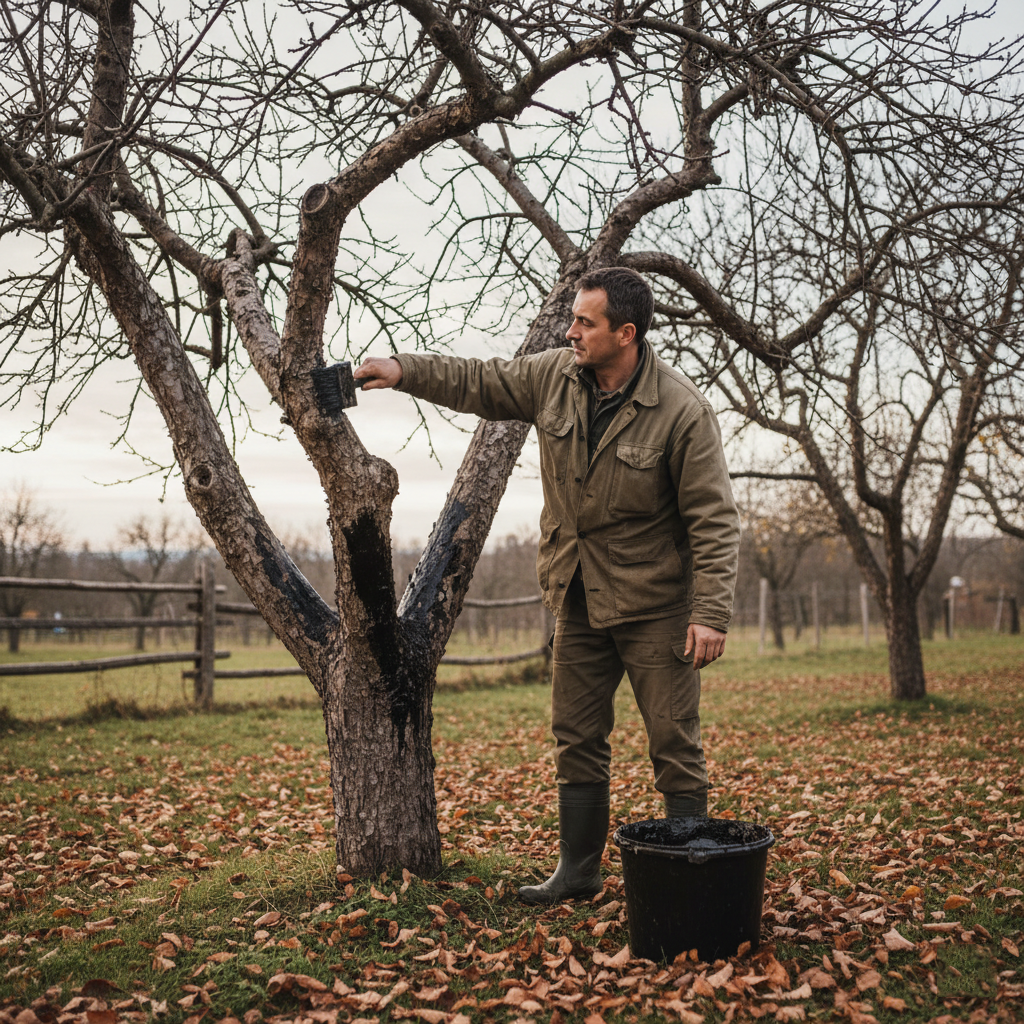 Свої молоді плодові дерева напередодні зими захищаю від зайців березовим дьогтем. Він має різкий запах, який добре відлякує вуханів. Найкраще робити це в листопаді, перед стійким похолоданням, і при потребі — повторно в січні.