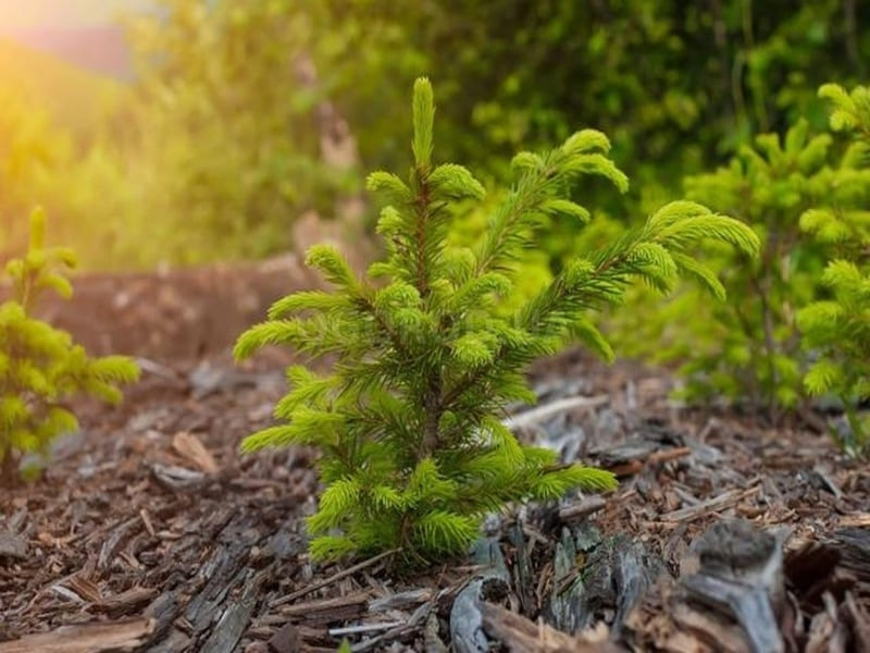 На дно ями для дренажу обов’язково насипте 15–20 см битої цегли, керамзиту або щебеню. Коренева шийка при посадці має бути на рівні землі. Копайте яму в 1,5–2 рази більшу за контейнер, у якому рослини висаджені в розпліднику. Після посадки обов’язково замульчуйте пристовбурне коло корою або тим же хвойним опадом. Не нехтуйте цими правилами, оскільки висаджування хвойних у звичайний садовий ґрунт часто є причиною того, що вони не приживаються або гинуть згодом. Як-не-як це жителі лісу, а там панують свої правила та умови.