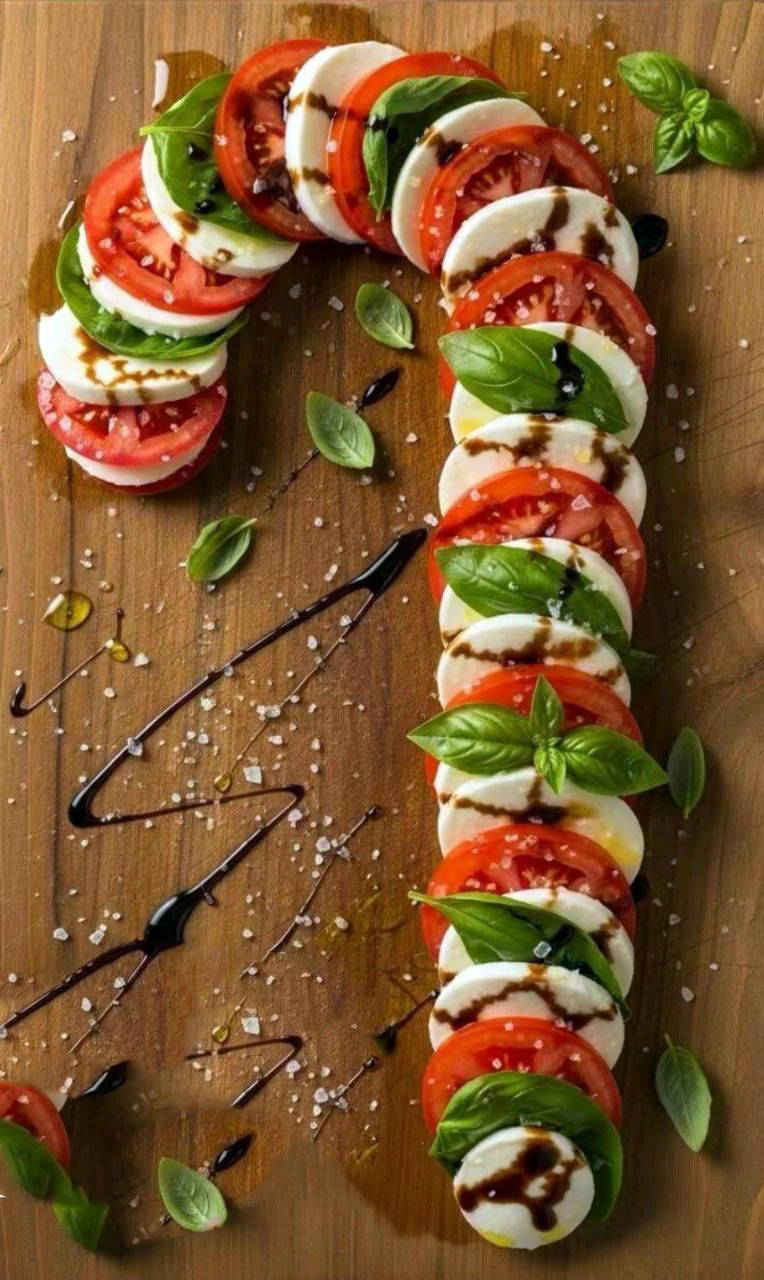 Це класична італійська страва, яка походить з острова Капрі. Салат дуже простий у приготуванні та складається лише з кількох інгредієнтів. Якщо викласти його у вигляді палички-льодяника, буде гарним і смачним декором для святкового столу.