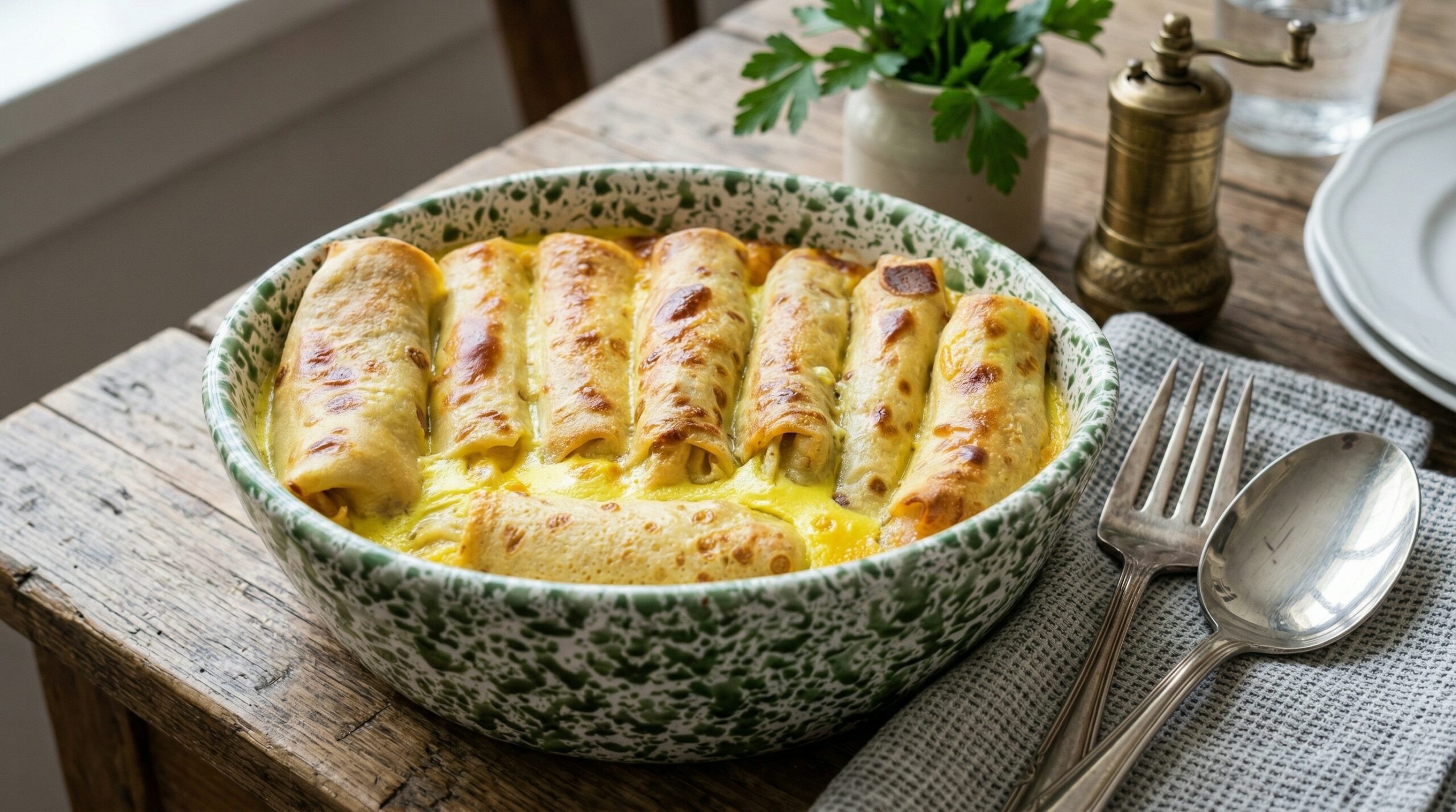 Заливка. Змішайте всі інгредієнти для заливки до однорідної консистенції та залийте млинці.