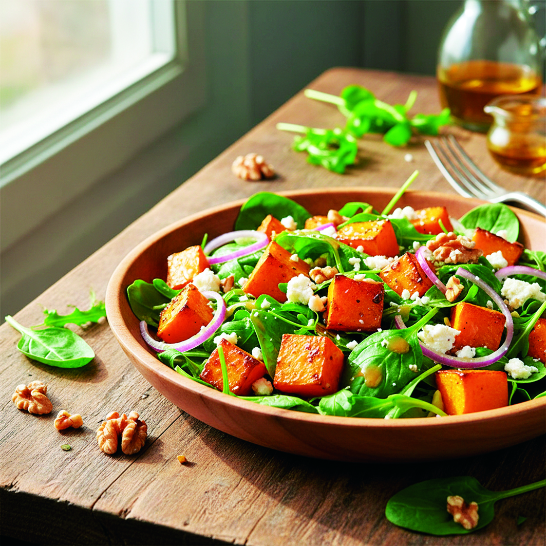 Салат із запеченого гарбуза — класика осінньої кухні, що поєднує в собі тепло, солодкість і пікантність. Запікання повністю розкриває смаковий потенціал гарбуза, роблячи його м’яким, карамелізованим і ароматним.